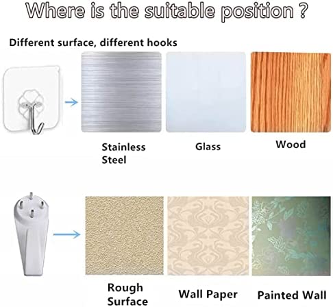 4. The adhesive hooks can’t be reusable, and is suitable for smooth porcelain board or wooden walls, or it may hurt your wall when you want to remove it.