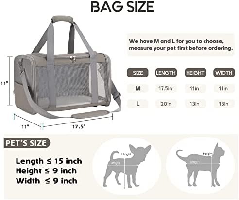 【Suitable Size & Airline Approved】 The dog carrier TSA approved measures about 17.5″ L x 11″ W x 11″ H, and it fits small and medium pets within 15″ x 9″ x 9″ and up to 15 lbs. Perfect gift for Thanksgiving or Christmas. The size is approved by most airlines. Please contact the airline before flying with your pet.