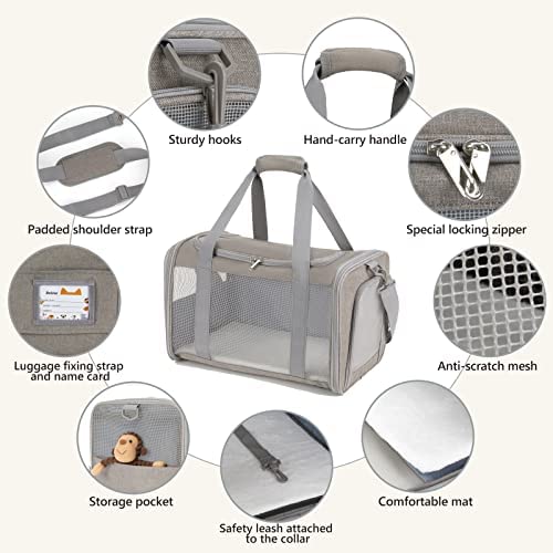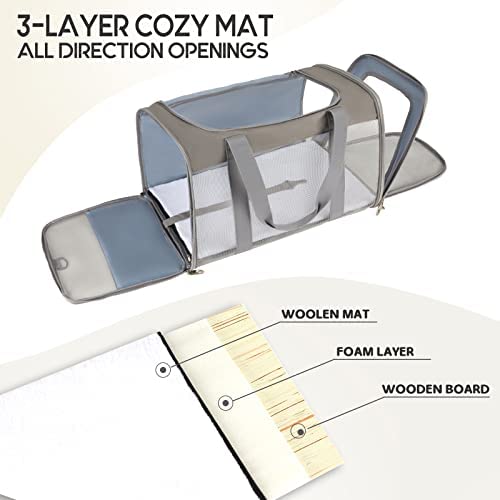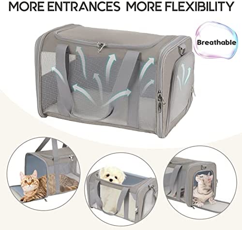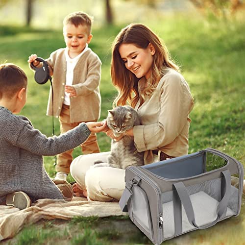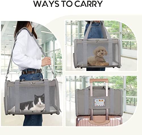 【Easy to carry & Foldable】 The small cat carrier features a detachable and adjustable shoulder strap for multiple ways to carry: by hand, by the shoulder, or through the suitcase handle. The design of half net and half storage on the side realizes the maximum utility of the cat carrier bag. You can store treats, toys, and even your wallet, phone, or other essential items for travel. And it can be easily folded flat when not in use.