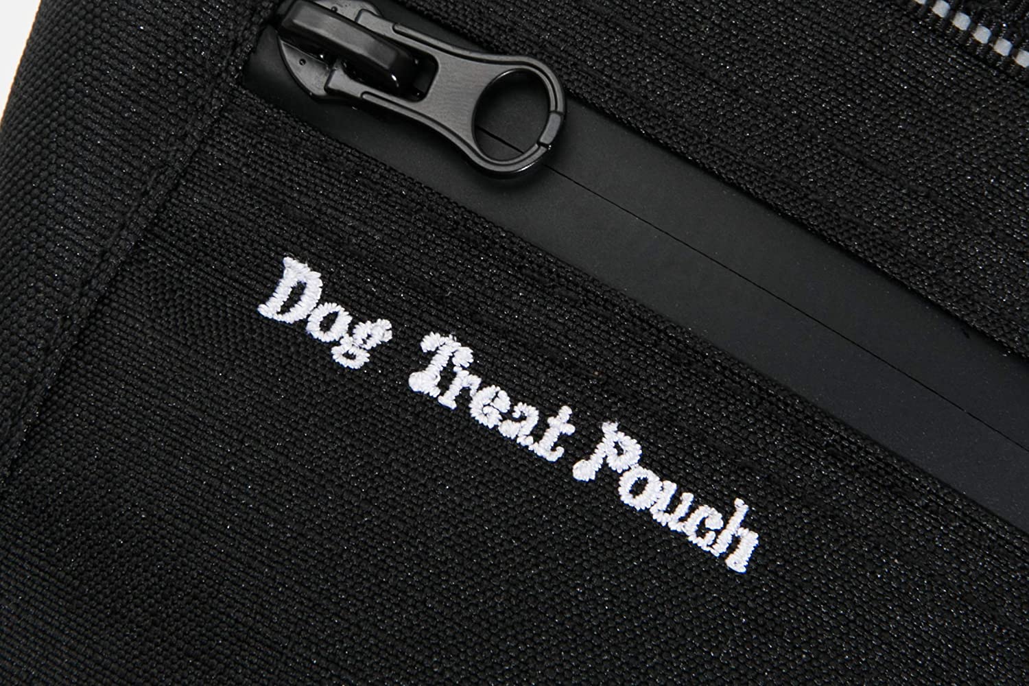Dog walking treat pouch is made of durable 900 denier polyester (“backpack”) material. Simply wipe clean. Hand-wash and air dry for best results