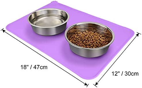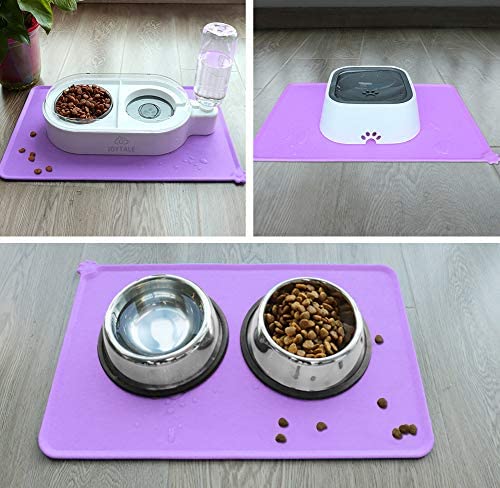 ANTI-MESSY DESIGN: Big feeding mat with raised edges prevents food, water and treats from splashing onto the floor