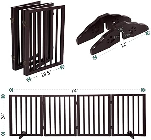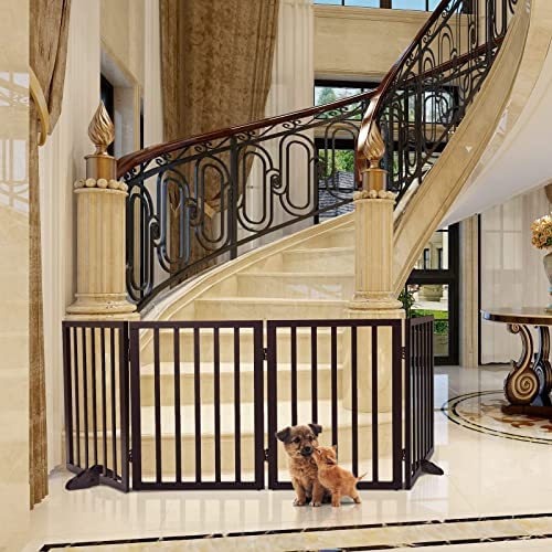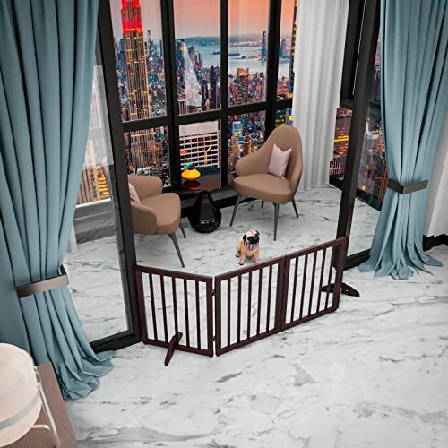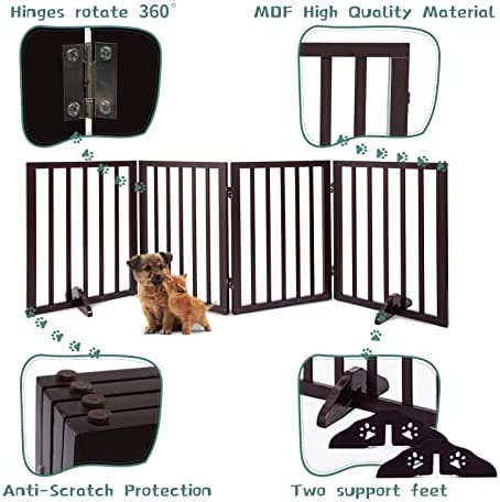 FOLDING AND EXPANDING DESIGN: This free standing pet gate is freestanding, no-drill, and features a 360-degree hinge design that allows you to fold it into a wide z shape or temporarily enclose it into a square fence. The wide slats of free standing doggie gate for indoors provide a secure barrier without making your pet feel like they are completely isolated from your home.