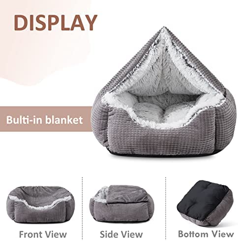 MIXJOY Dog Beds for Large Medium Small Dogs, Rectangle Cave Hooded Blanket Puppy Bed, Luxury Anti-Anxiety Orthopedic Cat Beds for Indoor Cats, Warmth and Machine Washable (20 inches, Grey)