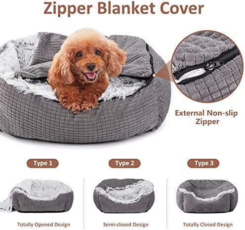 【Anti-Anxiety Calming Dog Bed】The interior sleeping surface adopt ultra fluffy and smooth long plush material, soft, cozy and not easy to shedding, which effectively retains your pet’s body heat. It has deep soft crevices to dig into, making it the ultimate nest for pets to snuggle in. The exterior and the hooded blanket design is made of corn kernel shaped flannel fabric, dirt-resistant and wear-resistant. The inner core is filled with white pp cotton, fluffy, breathable and elastic.