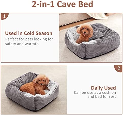 【Care Instructions】Due to the vacuum packaging, the pet bed will be compressed during transportation, the puppy bed will have wrinkles when first opened, Before using please rub gently on the cat bed for a few minutes to spread the PP Polyester filling to restore its fluffy state.