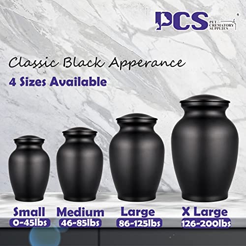 [ Three Dimensions for different pet weight ]: Small 0-45lbs, Medium 46-85lbs, Large 86-125lbs. As a classic black matte urn fits the remains of most pets,such as dogs ashes,cats ashes,guinea pigs ashes,etc.