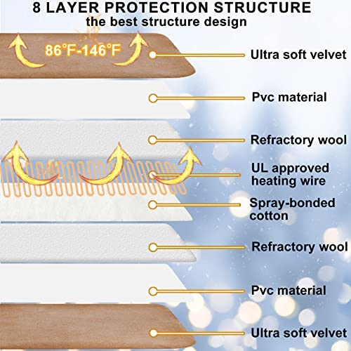 ❄【Adjustable Temperature】: The dog heated pad has 5 timer levels(4h/8h/12h/24h/48h) and adjustable temperature (from 86℉ to 146℉), which can be adjusted according to your pet’s needs with one button press of 10 ℉, Let your pet spend the winter warm and comfortable.