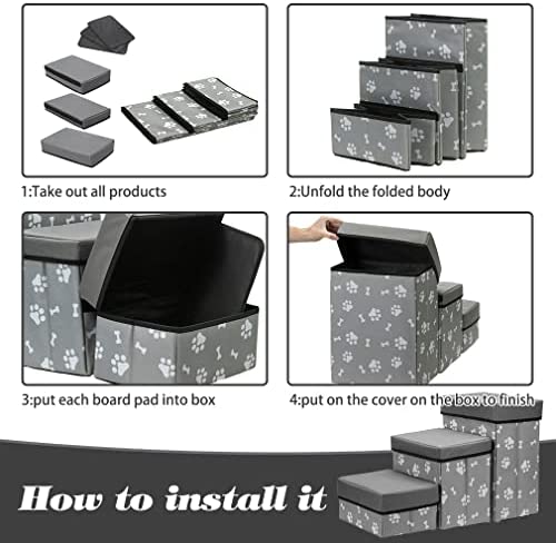 MORE WEAR-RESISTANT MATERIAL: This pet storage stair is well made of high quality cardboard and linen material, 600D oxford fabric with fashionable printing patterns can be more wear-resistant. Non-Slip fabric attached to the bottom of the product. Lightweight and comfortable, but safe and durable enough