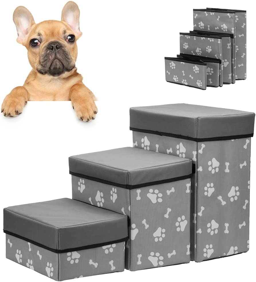 ADDEA STORAGE SPACE:There are storage spaces for each step,the lid of the storage box is removable, and there is enough space inside to store some pet clothes, toys, snacks or other things you want to put