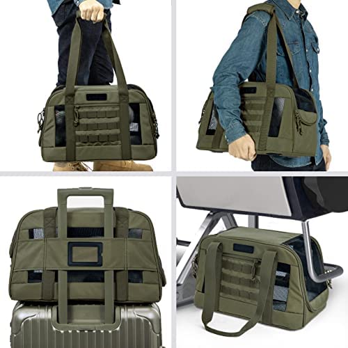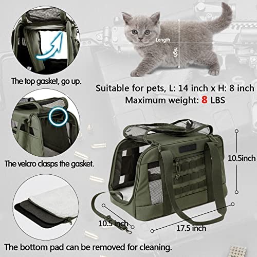 SPECIFICATIONS: The pet carriers are cats, Soft Puppy Travel Bag are made of 17.5×10.5×10.5 inches of wear-resistant tactical fabric, which can be put on the luggage trolley. Foldable dog cage. Cat cages, dog bags, cat bags, small dog carrier, small/Medium cat carrier