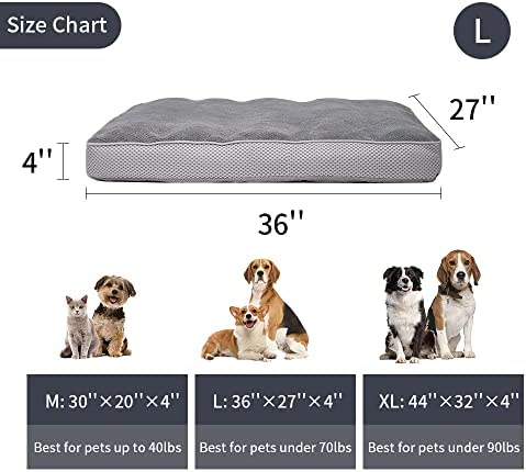Multi-Purpose Pet Bed: This large size dog bed measures 36″x27″x4″.Recommended for dogs or pets up to 70 lbs.The portable pet beds can be used as a stand-alone bed, crate bed, kennel bed, dog pillow, crate pad, even as a dog travel bed in a car or truck.