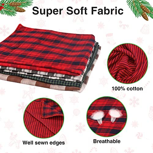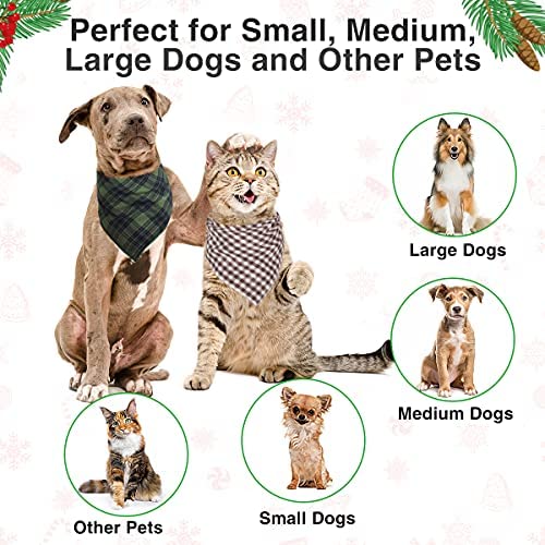SUPER SOFT COTTON MATERIAL – Made of durable dyed cotton yarn with classic plaid printing, supper soft and breathable. This Christmas dog bandana can be folded over multiple times to fit even small puppy or cats.
