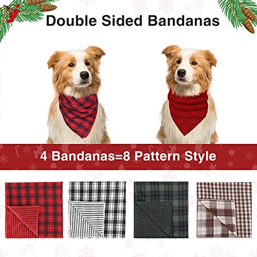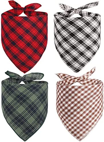 REVERSIBLE DESIGN – The plaid dog bandana designed to reversible with different printing, one side is plaid pattern and the other side is stripe pattern, for 4pcs pack dog bandanas you will get 8 style, you can change the look of your dogs according to the occasions.