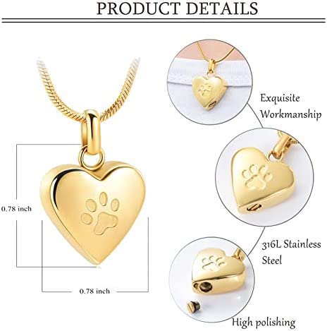 ????2.【Size & Design 】Size:0.78*0.78 inch.The heart urn necklace for ashes with paw print, which symbolized your love and blessing for your pet and keep them close to your heart.