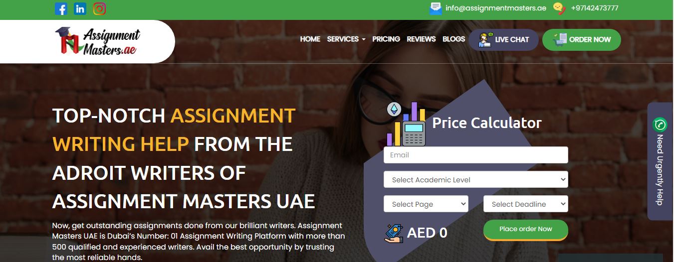 Assignments Master UAE is one of the top Leading Academics in Sharjah. They offer all kinds of Academic Services such as writing, essay, dissertation, and editing Services all over the UAE. They have fully Qualified members who easily tackle and manage all the Assignments works through Experienced and professionalism. Also, Assignments Masters UAE can assist Help your problems and their main concern is client satisfaction which is a very important thing. Any time you can contact them for any support.