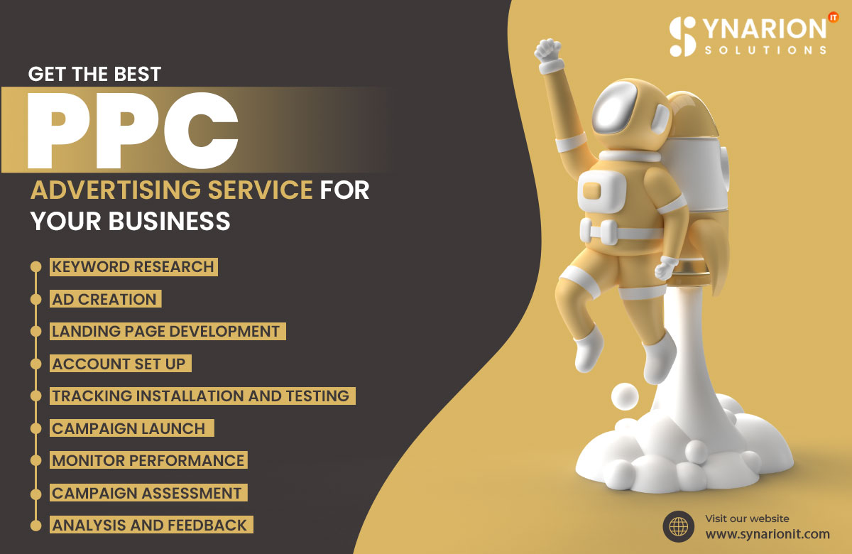 Elevate your online presence with our Best PPC Advertising Service. Our expert team crafts targeted pay-per-click campaigns, maximizing your reach and driving qualified traffic. We optimize ad performance, boost your brand visibility, increase conversions, and achieve measurable results. To contact us, you can call us at +91 7300353111 and email us at sales@synarionit.com