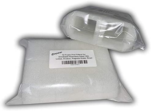 12 pack of foam pre-filters made for the Drinkwell Stainless Steel 360, Lotus, Avalon, and Pagoda pet water fountains. These pre-filters trap hair and other debris in the water, providing your pet with cleaner, healthier water, while also prolonging the life and flow rate of the filter pump. It is recommended to replace these every 2-4 weeks, depending on usage. This product is BPA-Free.